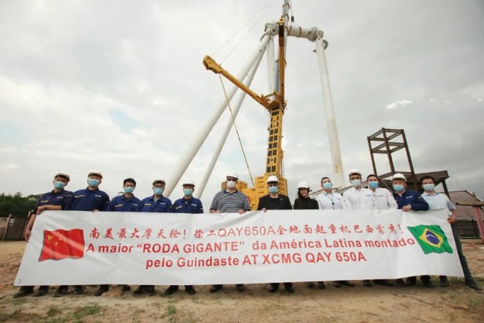 中國出口南美最大全地面起重機(jī)徐工QAY650A首吊拉丁美洲最大摩天輪