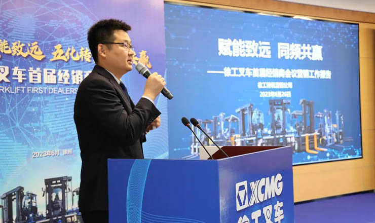 第二個(gè)環(huán)節(jié)是徐工叉車營(yíng)銷工作報(bào)告。徐工特機(jī)副總經(jīng)理、營(yíng)銷公司總經(jīng)理胡斯勒在會(huì)上作了營(yíng)銷工作主題報(bào)告,回顧近年徐工叉車取得的市場(chǎng)成就,從宏觀角度深刻剖析全球及行業(yè)發(fā)展趨勢(shì),全面闡述了徐工叉車戰(zhàn)略藍(lán)圖、經(jīng)營(yíng)模式、業(yè)務(wù)模式,開拓了我們經(jīng)銷商的經(jīng)營(yíng)思路和應(yīng)對(duì)措施,鼓勵(lì)叉車經(jīng)銷商們協(xié)同一致,行而不輟,未來可期。