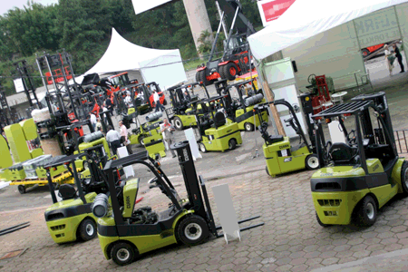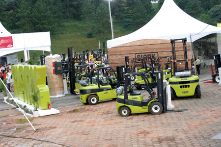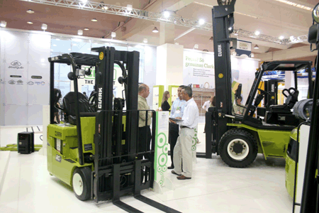 CLARK,身著傳統(tǒng)環(huán)保CLARK綠色元素的標(biāo)準(zhǔn)圖案閃亮登場,12臺(tái)品字排開,氣勢奪人,另有配件展示在集裝箱區(qū)域內(nèi)做演示,展示強(qiáng)大售后服務(wù)力量,這是其品牌目前所不能披靡的。CLARK的亮點(diǎn)吸引了眾多的客戶和同行前來參觀。由于參展產(chǎn)品的創(chuàng)新性及強(qiáng)烈的美國優(yōu)良品質(zhì)特性,吸引了眾多感興趣的客戶簽約及洽談后期合作。